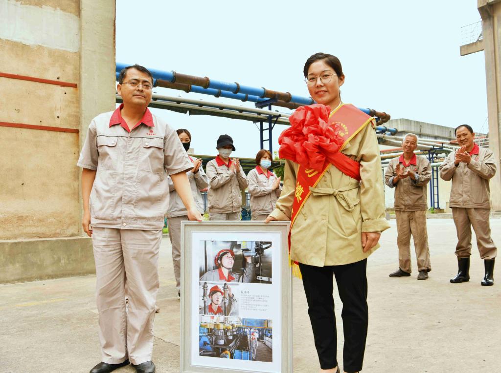 圖為臨選廠工會(huì)為三名勞模披上大紅綬帶、系上大紅花,送上“最美勞動(dòng)者”精美相片