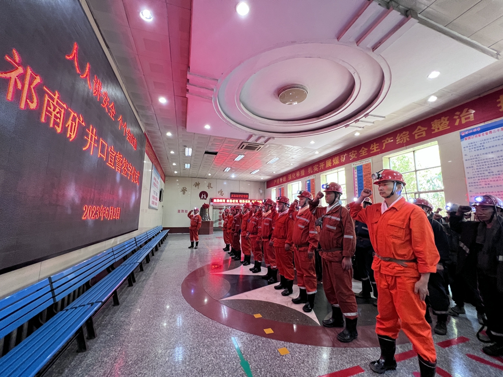 觀看安全警示教育片,深刻吸取事故教訓,決不能讓血的教訓再次發(fā)生!必須牢固樹立“安全第一”的思想,旗幟鮮明向野蠻操作宣戰(zhàn)、向“三違”、陋習頑疾亮劍,嚴格執(zhí)行剛規(guī)禁令,共同筑牢安全生產大堤?!盀榱税踩a,為了家庭幸福......”現(xiàn)場職工慷慨激昂,安全誓詞震撼共鳴,氣勢昂揚,久久回響在井口大廳內的安全誓言,時刻警醒著全礦干部職工把安全銘刻心間,讓安全成為習慣,做到上安全崗、干標準活,不安全堅決不生產。