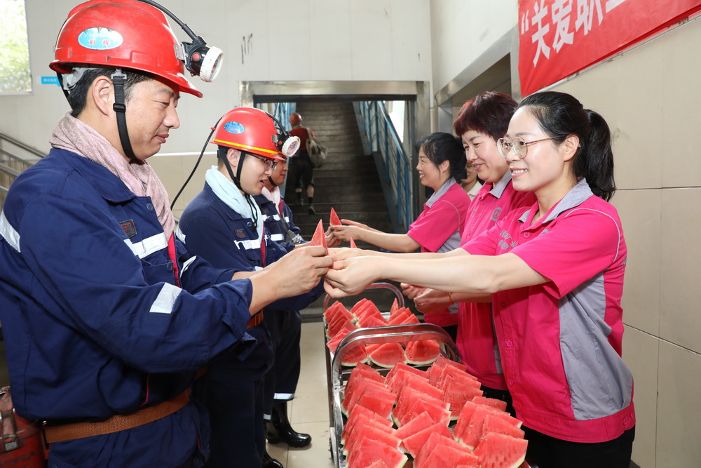 入夏以來,氣溫持續(xù)高升。臨渙選煤廠深入推進(jìn)“我為職工辦實(shí)事”,持續(xù)開展為職工送清涼活動(dòng),積極做好夏季防暑降溫工作。該廠領(lǐng)導(dǎo)率領(lǐng)工會(huì)工作人員將采購的新鮮西瓜第一時(shí)間送到生產(chǎn)一線車間、送到班前會(huì)上、送到職工的手上,確保夏季職工的身心健康,保障安全生產(chǎn)。