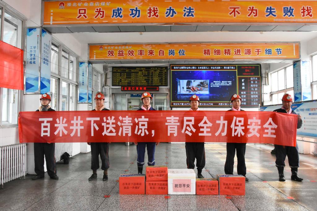 “井口送西瓜、食堂送涼面、班前送花露水、通勤車上送雪糕、長期提供綠豆茶、酸梅湯……”連日來,面對淮北地區(qū)的熱浪侵襲,童亭礦形式多樣的送清涼、送安全、送健康活動在職工中掀起高潮,“清涼西瓜送班前”“伏羊節(jié)免費(fèi)羊肉湯”等字眼霸屏了各單位微信工作群。在防暑降溫宣教活動現(xiàn)場,協(xié)安員通過有獎知識競答,普及防暑降溫、高溫作業(yè)安全防護(hù)常識,不斷增強(qiáng)職工防暑降溫意識,提升應(yīng)急處置能力。