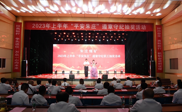 7月28日晚上,朱莊礦工人會堂內,來自該礦生產一線、生產輔助及地面單位的職工代表參加了2023年上半年“平安朱莊”遵章守紀抽獎活動。