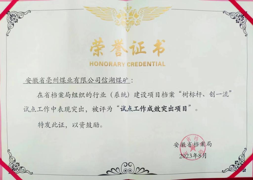 近日,信湖礦以“優(yōu)良”等級(jí),高標(biāo)準(zhǔn)順利通過省檔案局組織的建設(shè)項(xiàng)目檔案專項(xiàng)驗(yàn)收,榮獲2023年安徽省檔案局“試點(diǎn)工作成效突出項(xiàng)目”榮譽(yù)。