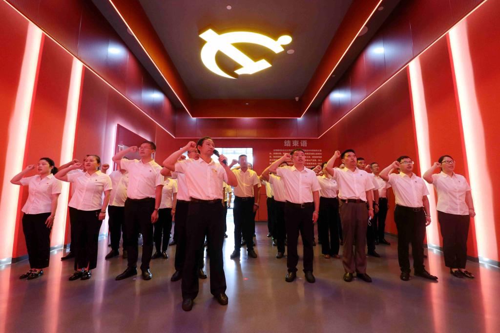 最后來到宣誓廳,在該礦黨委委員、總工程師周學(xué)斌的帶領(lǐng)下,全體黨員整齊列隊,面向黨旗,重溫入黨誓詞,鏗鏘有力的誓言更加堅定了作為共產(chǎn)黨員務(wù)必要牢固樹立廉潔意識、堅守廉潔底線的理想信念。