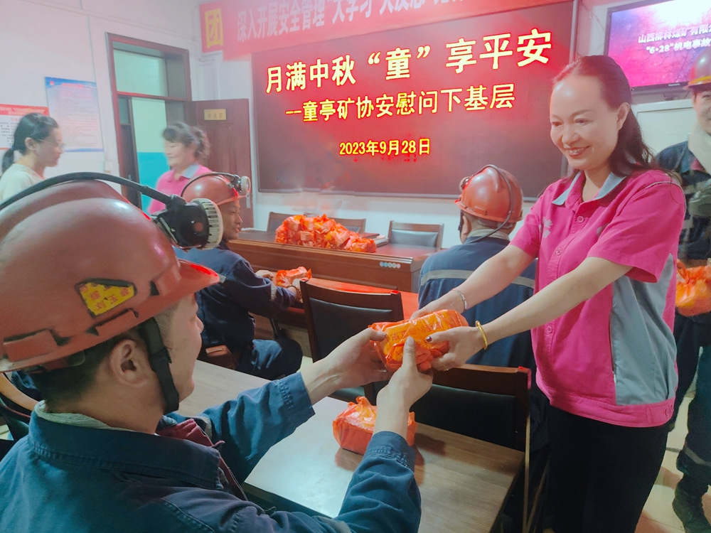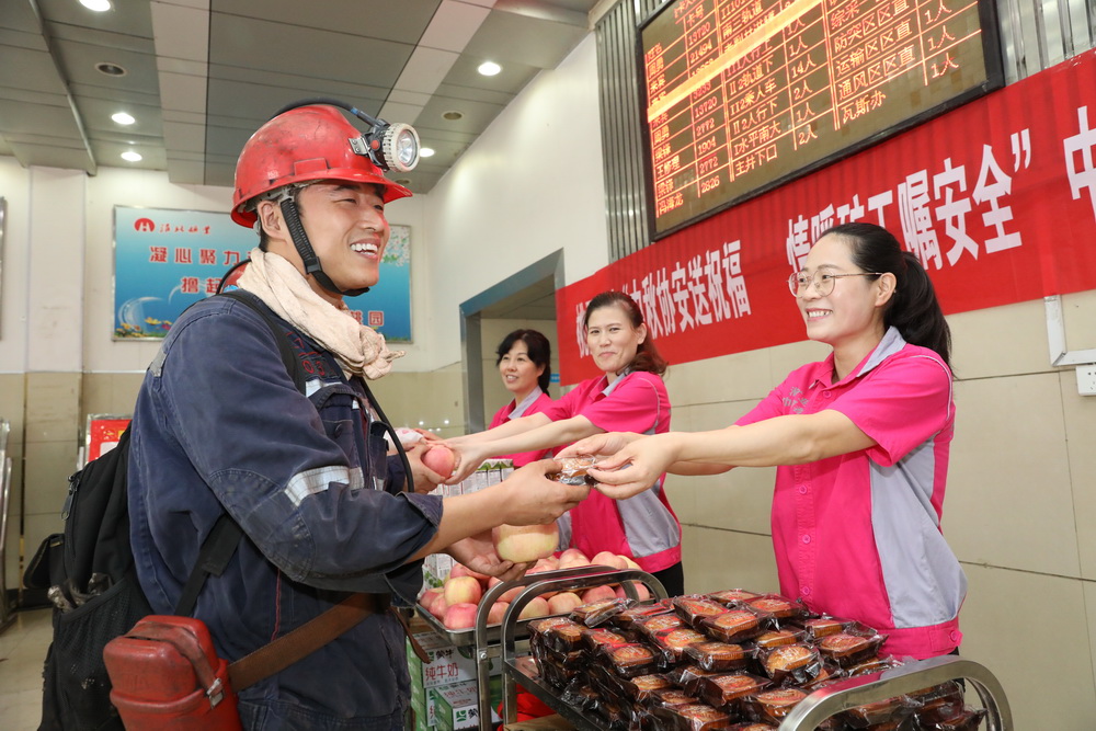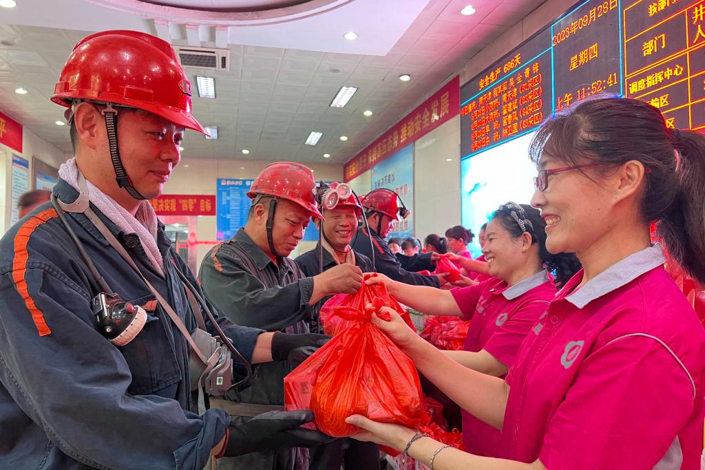 “祝礦工叔叔中秋快樂,闔家團(tuán)圓!”“平平安安上班來,高高興興回家去?!?月29日中午,桃園礦副井口罐室內(nèi)傳來一陣陣祝福聲,礦工會(huì)組織開展的“中秋協(xié)安送祝福 情暖礦工囑安全”協(xié)安慰問活動(dòng)為一線礦工帶來濃濃的親情與問候。