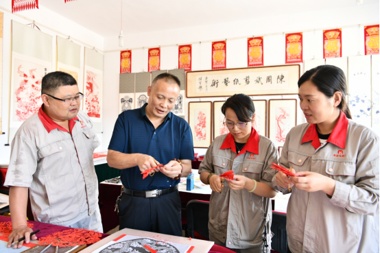 陳國斌力求剪紙藝術(shù)的傳承與創(chuàng)新,廣泛傳播剪紙藝術(shù),采取工作室隨時(shí)開放、隨時(shí)學(xué)習(xí)、義務(wù)教學(xué)等形式,通過親手剪、親自做、親身體會,讓剪紙藝術(shù)飛入尋常百姓家,深受廣大職工群眾的青睞。他還多次參加文化惠民活動,并走進(jìn)社區(qū)、學(xué)校、軍營進(jìn)行授課,以匠心守初心,義務(wù)傳授弟子幾十人,遍及20多家廠礦,培訓(xùn)學(xué)生700多人次。