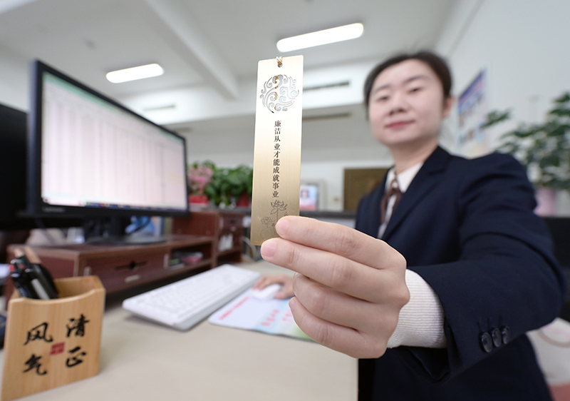 “書簽、筆筒、鼠標墊,可以時刻提醒自己保持清正廉潔之心、繃緊拒腐防變之弦,同時也提醒我們保持良好閱讀習慣,持續(xù)提升個人修養(yǎng)?!苯?jīng)營管控部黨支部書記張愛軍說。