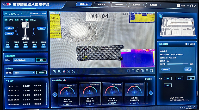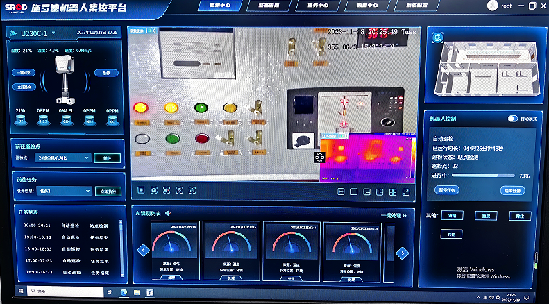 U230c智能機(jī)器人系統(tǒng)以軌道式巡檢機(jī)器人為核心,由軟件系統(tǒng)、軌道系統(tǒng)、供電通訊系統(tǒng),機(jī)器人本體、分布式感知組件及其它相關(guān)設(shè)備組成,集移動(dòng)視頻巡檢、紅外測(cè)溫、環(huán)境測(cè)控、分布式感知、數(shù)據(jù)智能分析等功能為一體,可在操作室設(shè)置系統(tǒng)服務(wù)器,實(shí)現(xiàn)對(duì)高壓配電室巡檢區(qū)域設(shè)備的實(shí)時(shí)監(jiān)控、數(shù)據(jù)分析管理存儲(chǔ)檢索等功能,在對(duì)高壓配電室高壓開關(guān)柜進(jìn)行自上而下全面巡檢的同時(shí),其儀器艙內(nèi)集成多種檢測(cè)傳感器,對(duì)高配室的開關(guān)柜和供電環(huán)境條件進(jìn)行綜合檢測(cè),包括視覺(jué)分析、紅外熱成像檢測(cè)等。投入使用后,可提高供電系統(tǒng)的巡檢頻率和巡檢質(zhì)量,提升關(guān)鍵區(qū)域的智能化運(yùn)維水平,實(shí)現(xiàn)配電室無(wú)人、少人值守。