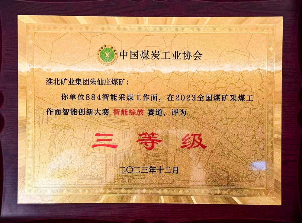 1月6日,從2023年全國煤礦采煤工作面智能創(chuàng)新大賽頒獎現(xiàn)場傳來好消息,經(jīng)初賽、復賽、決賽及大賽組委會審核認定,淮北礦業(yè)集團朱仙莊煤礦884智能采煤工作面被評定為智能綜放賽道三等級。