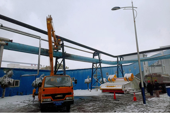 為避免長(zhǎng)時(shí)間地漏料影響系統(tǒng)正常生產(chǎn)并造成環(huán)保問題,該車間值班人員積極協(xié)調(diào),組織人員進(jìn)行搶修準(zhǔn)備工作。次日,經(jīng)匯報(bào)廠部同意并取得登高作業(yè)許可證后立即組織班組搶修人員冒雪進(jìn)行搶修作業(yè)。作業(yè)前,搶修人員提前按照措施要求對(duì)現(xiàn)場(chǎng)進(jìn)行雨雪和冰凌清理,盡可能消除作業(yè)環(huán)境風(fēng)險(xiǎn)。隨后,克服高空及嚴(yán)寒困難,在工程車輛管理部和搶修人員通力合作下,歷時(shí)1小時(shí)30分鐘,搶修工作結(jié)束,作業(yè)人員衣服、鞋均濕透。