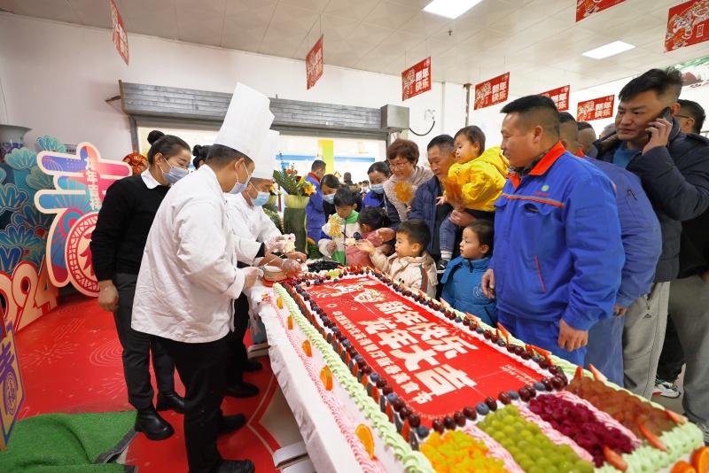 美食節(jié)現(xiàn)場擺放巨大蛋糕,中國龍、五彩裝飾點綴出節(jié)日的喜慶和濃濃的年味。
