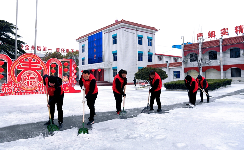 為保障雨雪天氣道路通暢,方便職工安全出行,該廠青年志愿者充分發(fā)揮奉獻(xiàn)精神,集中清理主要出入口、行人進(jìn)出的主干道沿線積雪,使用鐵鍬、掃帚等工具將厚厚的積雪清理干凈,開辟出一條又一條方便職工通行的暖心道路。