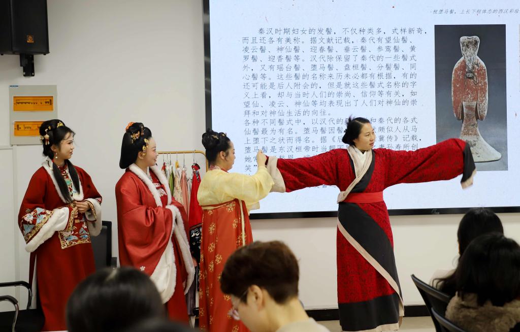 在“三八”國際婦女節(jié)即將到來之際,3月6日下午,淮北煤電技師學院工會召集全院女職工舉行了一場主題為“賞華美漢服 展文化自信——漢服各朝形制”禮儀文化講座。通過聆聽講座和試穿、展示、交流,女職工對漢服文化有了更加深入的了解,激發(fā)了熱愛民族文化的熱情,強化了民族自信,也鼓舞了干事創(chuàng)業(yè)的精氣神。(王永生)