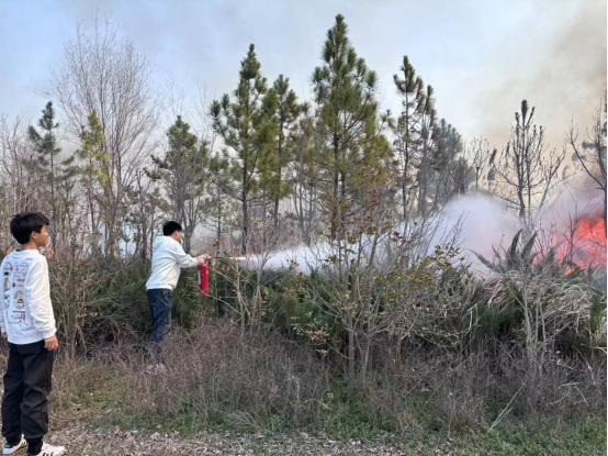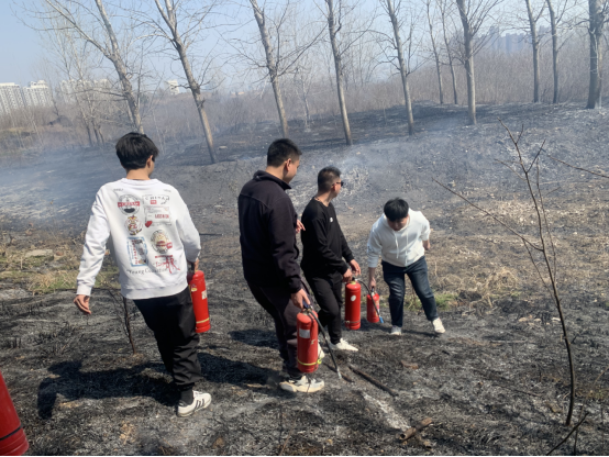緊急時(shí)刻,程塏朝立刻撥打119火警電話,眼看大風(fēng)導(dǎo)致火越燒越大,他們不顧一切急忙跑進(jìn)火場(chǎng),協(xié)助保安使用滅火器進(jìn)行撲救。面對(duì)兇猛火勢(shì)、滾滾濃煙,他們齊心協(xié)力、毫不退縮,跟隨后趕來的消防隊(duì)員們一起將明火全部撲滅。