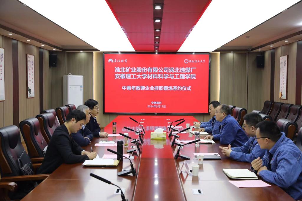 為深入推進(jìn)校企合作、促進(jìn)產(chǎn)學(xué)研融合,日前,渦北選煤廠與安徽理工大學(xué)材料科學(xué)與工程學(xué)院舉行中青年教師企業(yè)掛職鍛煉簽約儀式。