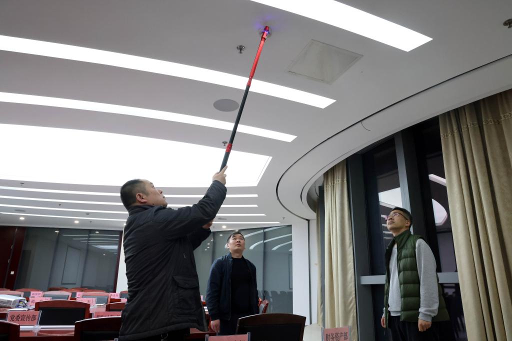 3月29日夜,物業(yè)分公司安全管理人員模擬煙霧觸發(fā)辦公中心消防報警裝置