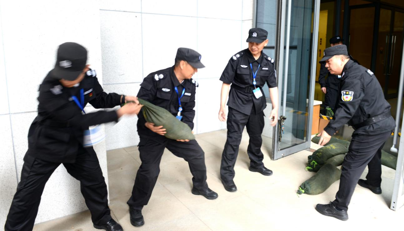緊緊運(yùn)送沙袋防止“雨水”倒灌