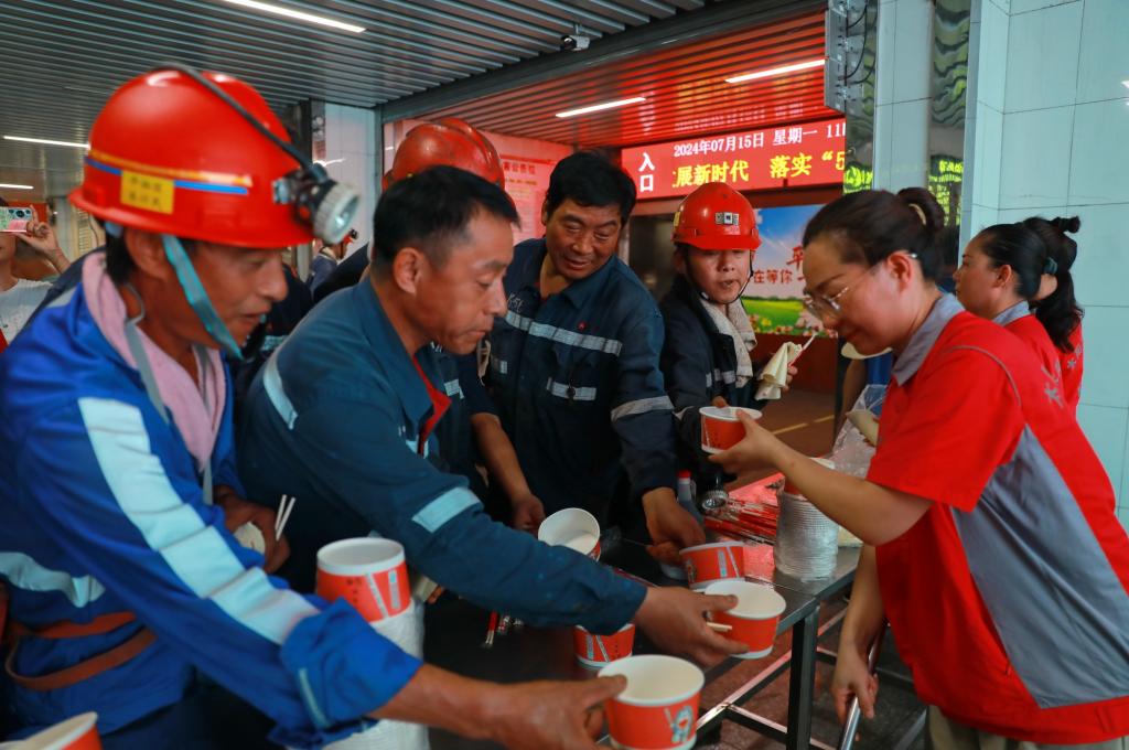 7月15日,入伏第一天,孫疃礦南北兩個(gè)職工餐廳里,空氣中飄蕩著濃濃的羊肉醇香,上中班的礦工師傅早已排起長(zhǎng)長(zhǎng)的隊(duì)伍,等待著享用免費(fèi)羊肉湯。