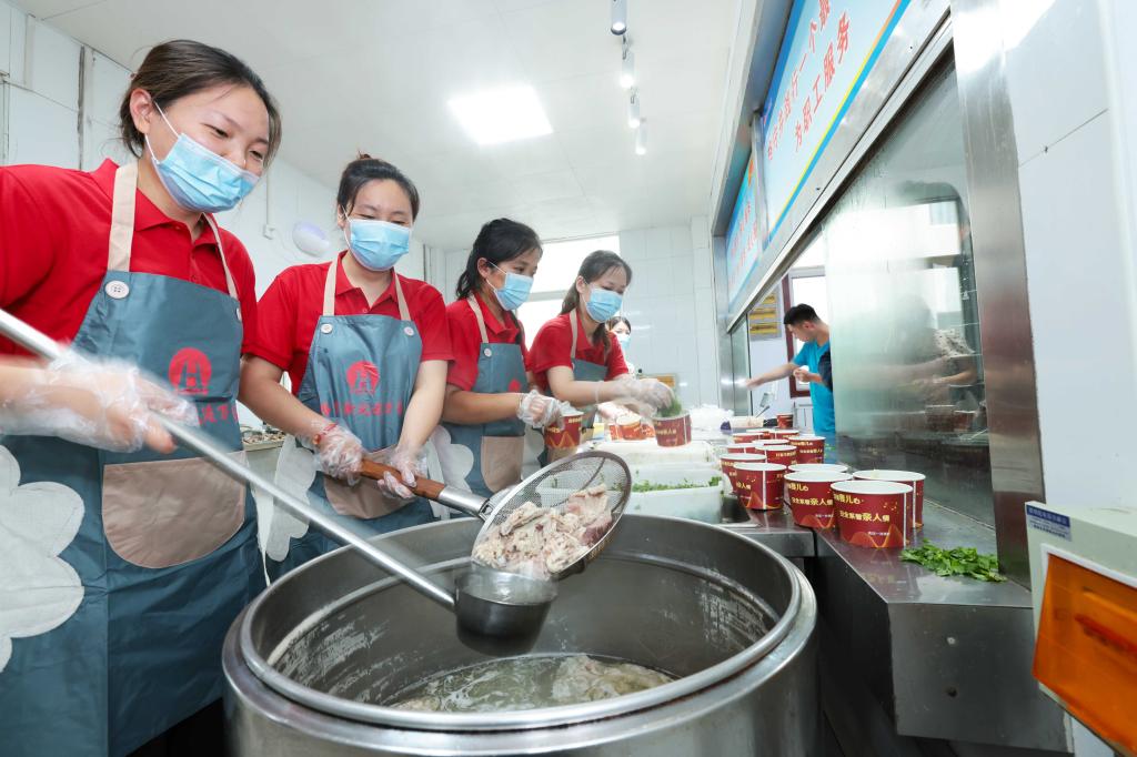 “為讓工友們喝上新鮮羊肉湯,我們提前一天訂購(gòu)現(xiàn)殺的本地山羊,連夜浸泡、精心熬煮10多個(gè)小時(shí),讓大家吃得放心、舒心、開(kāi)心?!笔程秘?fù)責(zé)人說(shuō)道。
