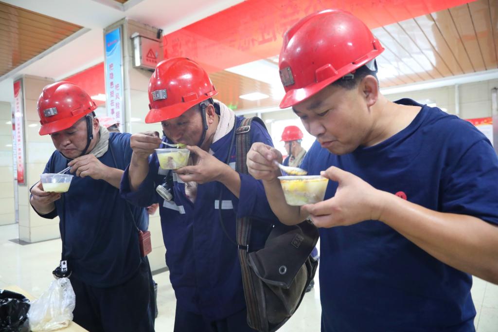7月15日,童亭礦兩名剛下班的職工喝著免費(fèi)的羊湯,不禁發(fā)出幸福的感慨。