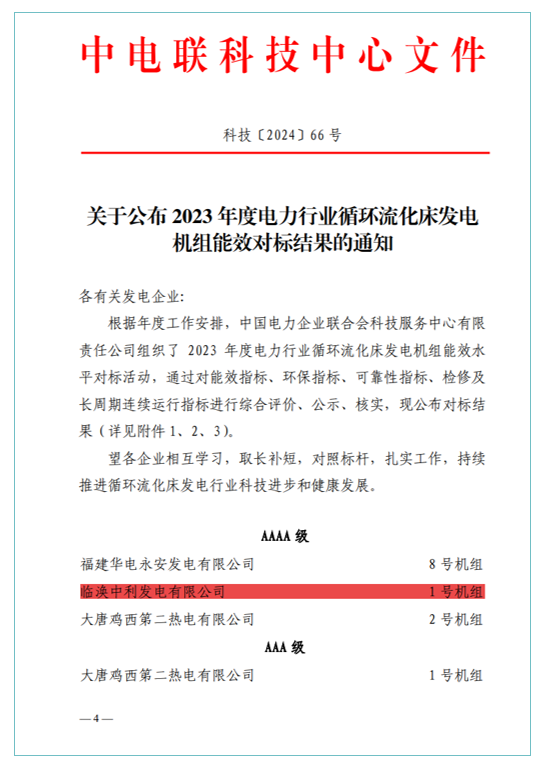 近日,中國電力企業(yè)聯(lián)合會公布了2023年度電力行業(yè)火電機(jī)組能效水平對標(biāo)競賽結(jié)果,中利發(fā)電公司1號機(jī)組獲300MW級亞臨界濕冷供熱機(jī)組AAAA級稱號,并創(chuàng)該公司機(jī)組能效對標(biāo)競賽歷史最好成績,標(biāo)志著該公司安全生產(chǎn)精益化管理、節(jié)能降耗工作邁上新臺階。
