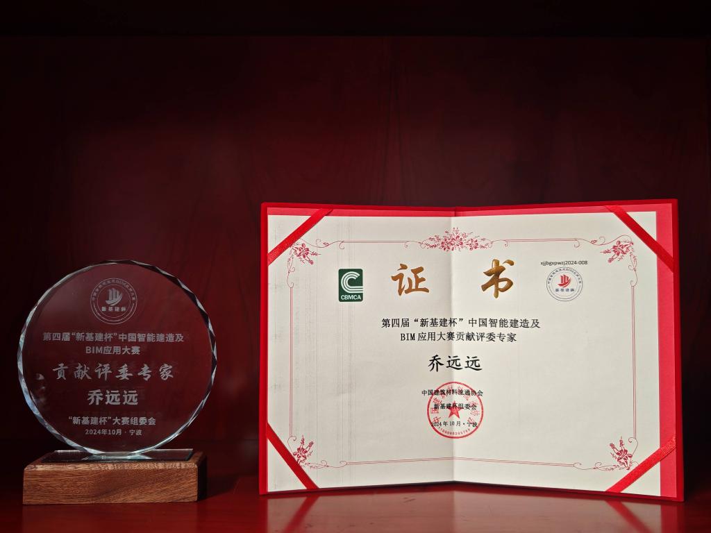 近日,中國(guó)建筑材料流通協(xié)會(huì)及全國(guó)“新基建杯”大賽組委會(huì)根據(jù)《“新基建杯”中國(guó)智能建造及BIM應(yīng)用大賽評(píng)委管理辦法》規(guī)定,通過綜合考核,評(píng)選出22位第四屆“新基建杯”中國(guó)智能建造及BIM應(yīng)用大賽“貢獻(xiàn)評(píng)委專家”,工程建設(shè)公司職工喬遠(yuǎn)遠(yuǎn)榜上有名,獲此殊榮。
