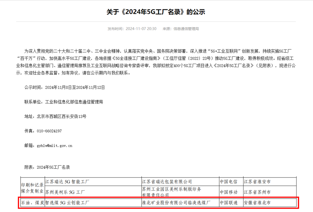 日前,國家工業(yè)和信息化部信息通信管理局公示《2024年5G工廠名錄》,淮北礦業(yè)股份有限公司臨渙選煤廠榜上有名。臨渙選煤廠憑借在5G工業(yè)應(yīng)用領(lǐng)域的創(chuàng)新突破,成功入選5G工廠名錄,奏響了企業(yè)發(fā)展的嶄新樂章。