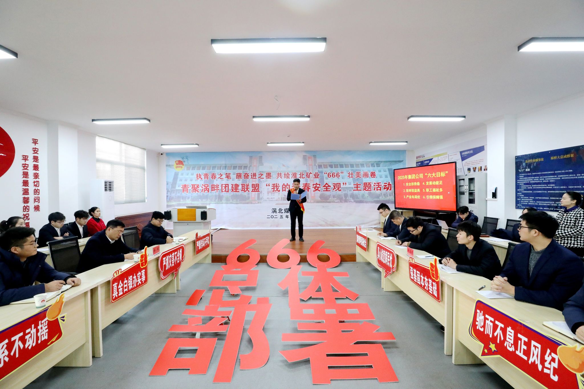 “淮北礦業(yè)集團(tuán)‘兩會’明確了‘666’年度總體部署,即實(shí)現(xiàn)‘六大目標(biāo) ’、干成‘六件大事 ’、辦好‘六件實(shí)事 ’……”活動伊始,青春宣講員向在場人員激情澎湃地解讀集團(tuán)“兩會”的核心內(nèi)容。一字一句擲地有聲,將集團(tuán)新一年的宏偉藍(lán)圖,清晰明了地鋪展在眾人眼前。