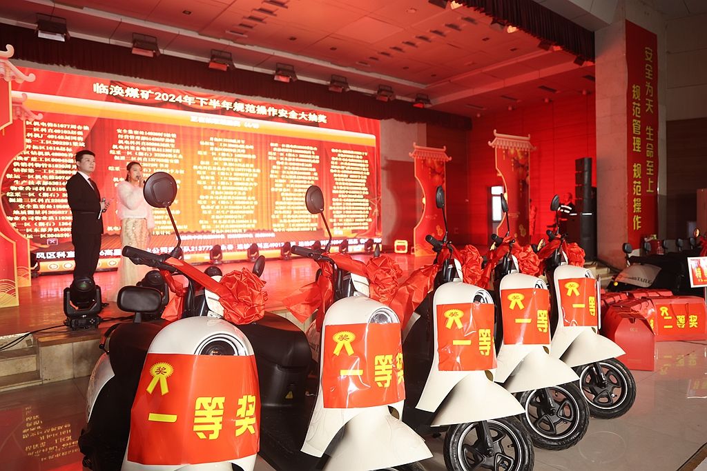 “一等獎(jiǎng)10名,獎(jiǎng)品是電瓶車,大家一起和我倒數(shù),5、4、3、2、1,停!”近日,臨渙礦職工活動(dòng)中心室內(nèi)熱鬧非凡,氛圍緊張又喜慶。原來(lái)這里正在舉辦礦第七屆職工文化藝術(shù)節(jié)暨2024年下半年規(guī)范操作安全抽獎(jiǎng)活動(dòng)。礦下半年無(wú)“三違”職工歡聚一堂,看演出、抽大獎(jiǎng),樂(lè)享“安全紅利”。