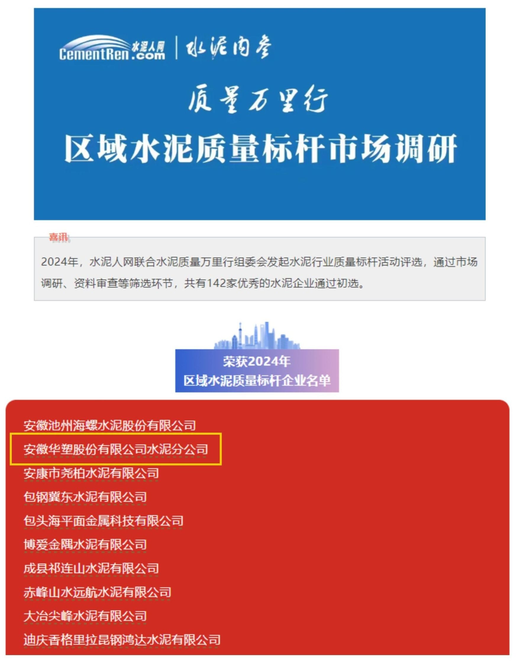 近日,水泥人網聯合水泥質量萬里行組委會發(fā)布2024年區(qū)域水泥質量標桿企業(yè)名單,華塑股份水泥分公司榜上有名。