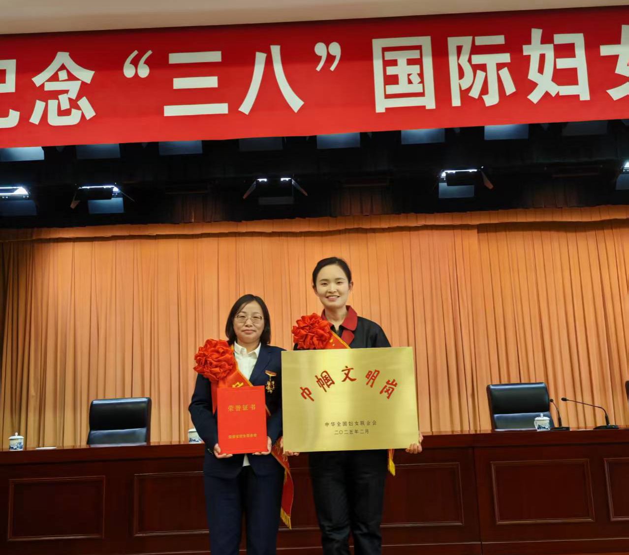 2025年全國巾幗文明崗袁店一井絞車房班、安徽省三八紅旗手標兵朱仙莊礦劉維凡在現(xiàn)場接受表彰。