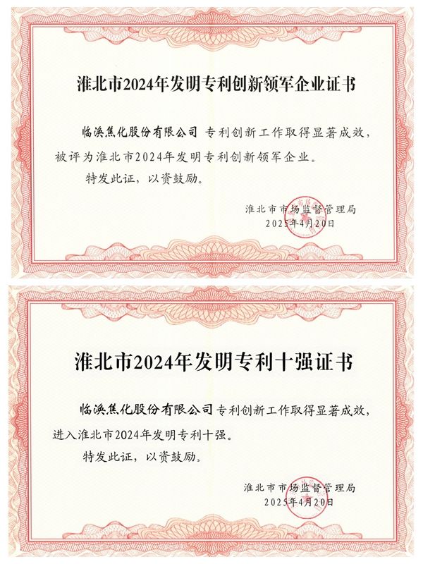 日前,從淮北市市場監(jiān)督管理局傳來喜訊,臨渙焦化公司獲評淮北市“2024年發(fā)明專利創(chuàng)新領(lǐng)軍企業(yè)”和淮北市“2024年發(fā)明專利十強(qiáng)”兩項榮譽(yù)稱號。