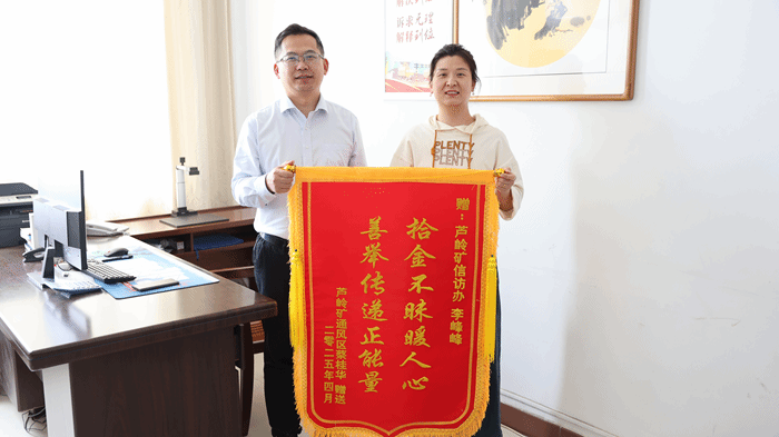 當日下午,該礦通風(fēng)區(qū)女工蔡桂華在井口返回到工作崗位時,摸到脖子上的項鏈沒有了,當時心里很著急,于是她順著上下班走過的路來回找了2遍,又去礦南門停車場及車里找了幾遍。找尋未果后,蔡桂華趕緊聯(lián)系物業(yè)管理科監(jiān)控室,說明自己不慎遺失貴重項鏈,請求調(diào)取監(jiān)控視頻協(xié)助查找。物業(yè)管理科當日值班姜海龍通過詳細詢問項鏈的款式特征、鑲嵌細節(jié)以及蔡桂華當日下午在工廣區(qū)的具體活動軌跡,最終確認其失主身份,并將李峰峰拾到項鏈的經(jīng)過告訴了她。找回失物的蔡桂華隨即致電李峰峰,向其表達誠摯謝意,并制作了一條錦旗送給李峰峰,當面致謝。