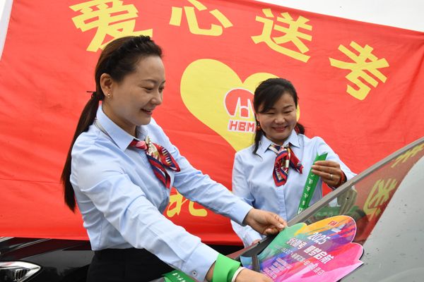 臨近高考,淮北市愛心助考大型公益活動在市傳媒中心啟動?;幢边x煤廠12名志愿者組成愛心車隊為考生保駕護(hù)航。