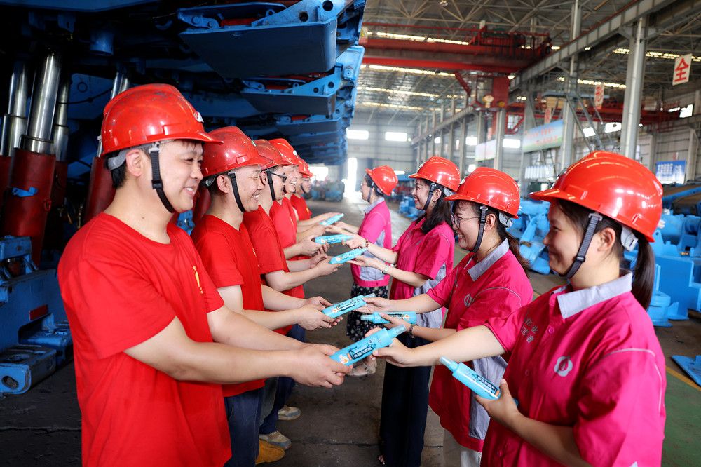 時(shí)值盛夏,淮北地區(qū)持續(xù)遭遇高溫“烤”驗(yàn),驕陽似火,熱浪襲人,生產(chǎn)裝備分公司組織女工協(xié)安員深入各生產(chǎn)車間,為堅(jiān)守崗位的一線職工送去精心準(zhǔn)備的綠豆湯、花露水、毛巾等防暑降溫物品,在炎炎夏日為職工撐起一片“綠蔭”。(撰稿:趙德強(qiáng) 審核:任建忠)