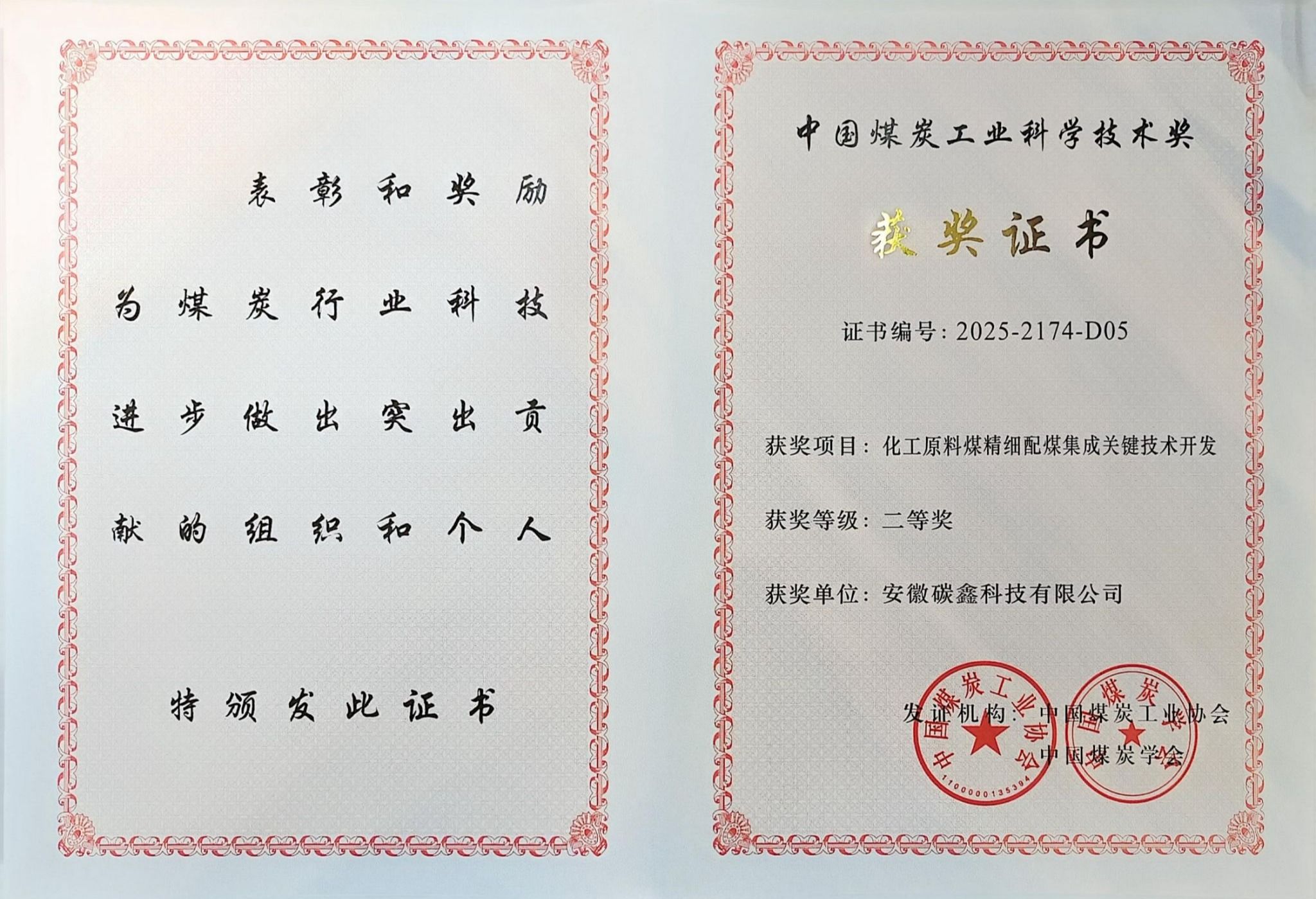 近日,中國煤炭工業(yè)協(xié)會公布了2025年度中國煤炭工業(yè)科學(xué)技術(shù)獎獲獎名單,碳鑫科技參與的《化工原料煤精細(xì)配煤集成關(guān)鍵技術(shù)開發(fā)》項目,榮獲中國煤炭工業(yè)科學(xué)技術(shù)獎二等獎。