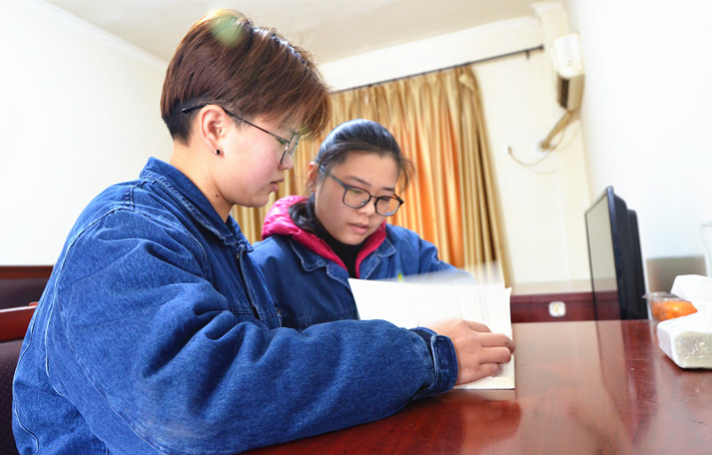 11. 閉路電視、免費(fèi)網(wǎng)絡(luò)、空調(diào)、獨(dú)立衛(wèi)生間、電熱水器……與華塑股份總部一樣,員工宿舍配備齊全。員工毛玉潔(右一)與韓彭在宿舍學(xué)習(xí)。