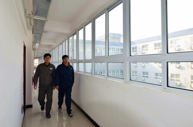 10.“2018年,我們的愿望是住上夫妻房?!奔庸ぼ囬g機(jī)修工張強(qiáng)宇與中控員孔凡凡是一對(duì)“準(zhǔn)夫妻”,倆人打算年后完婚。為解決員工住房問題,無為華塑新建員工宿舍2017年7月正式投入使用。為儲(chǔ)備人才,2016年8月份,華塑股份公司招收100余名大專以上學(xué)歷人員,張強(qiáng)宇與孔凡凡一起來到華塑。
