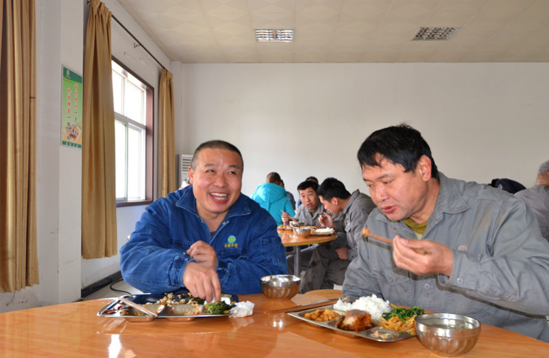 9.“在這比礦上好!”加工車間機(jī)修工周云濤,2015年從朔石礦業(yè)東部井轉(zhuǎn)崗到無為華塑,說到公司的吃、住、行,幸福感溢于言表。