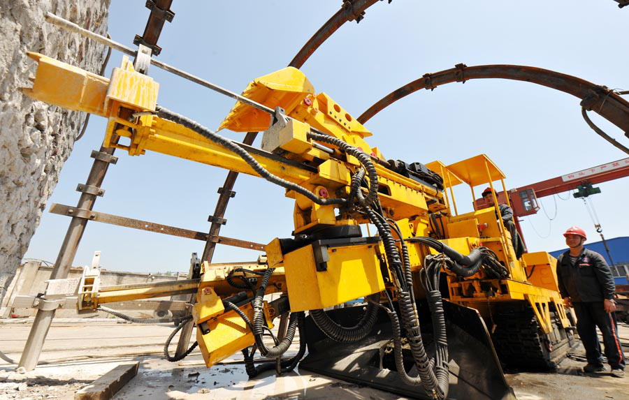 工程處積極引進(jìn)淮北礦區(qū)首臺、重達(dá)35噸的大型巖巷鉆裝機(jī),實(shí)現(xiàn)了兩條機(jī)械臂鉆孔、挖裝運(yùn)輸矸石、履帶自行多重功能,有效破解百米井下硬巖掘進(jìn)難題,降低工人勞動強(qiáng)度,提高掘進(jìn)效率。