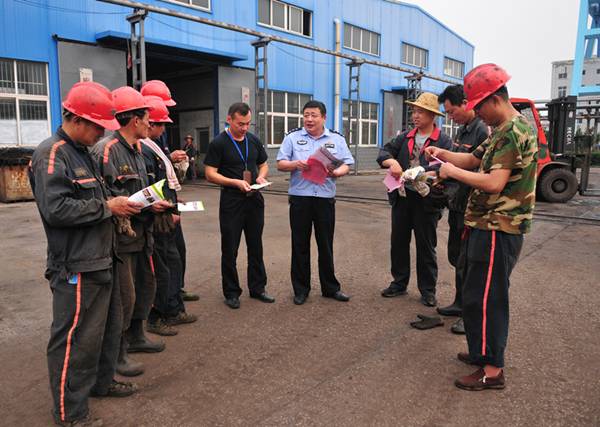 圖為片區(qū)民警在勸導職工遠離毒品。(責編 孟慧奇)