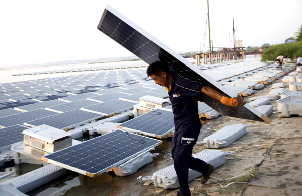 正在安裝光伏板。