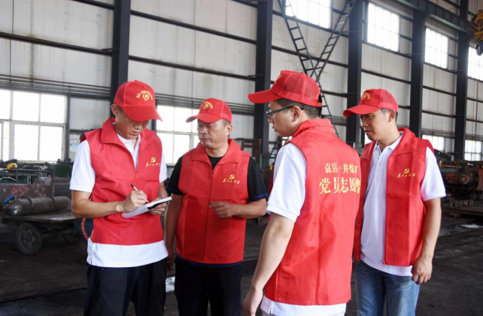 “雙達(dá)標(biāo)”會戰(zhàn)活動中,袁店一礦積極發(fā)揮黨員先鋒模范作用,組建黨員志愿者服務(wù)隊(duì),并組織志愿者們深入井下巷道和地面重要車間、庫房等場所,查隱患,促整改,為礦井安全生產(chǎn)保駕護(hù)航。圖為8月3日,該礦黨員志愿者服務(wù)隊(duì)集中上崗,到地面車間排查安全隱患。