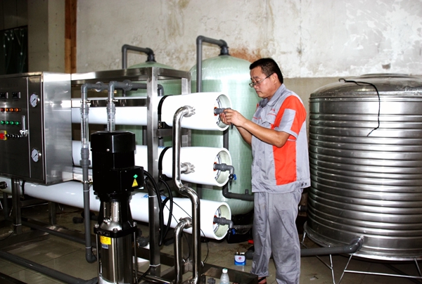 為解決井下職工的健康飲水問題,蘆嶺礦從實際出發(fā),為職工健康著想,經(jīng)過多方詢價、比選、招標(biāo)后,在茶水站及井口走廊安裝了凈化水設(shè)備,使職工能夠隨時喝到放心、健康水的愿望得以實現(xiàn)。圖為日前工作人員對凈化水設(shè)備進(jìn)行安裝調(diào)試。(責(zé)編 梁尚文)