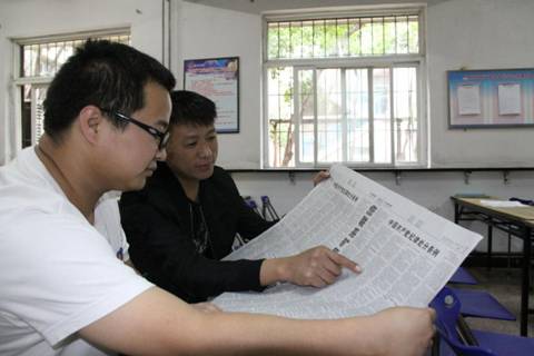圖為該礦職工學(xué)習(xí)《條例》