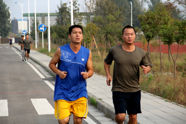 (體能:參賽隊(duì)員用手機(jī)測(cè)定5000米跑步用時(shí),爭(zhēng)分奪秒,你追我趕)
