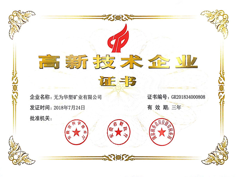 新年伊始,無為華塑礦業(yè)有限公司傳來喜訊:1月4日,收到安徽省科學(xué)技術(shù)廳、安徽省財政廳、國家稅務(wù)總局安徽省稅務(wù)局聯(lián)合頒發(fā)的《高新技術(shù)企業(yè)證書》,順利通過高新技術(shù)企業(yè)認(rèn)證。