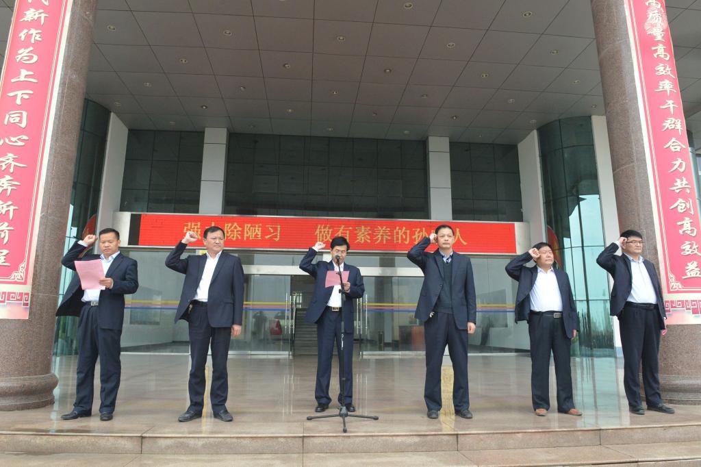 4月23日,孫疃礦舉行“強力除陋習(xí),做有素養(yǎng)的孫疃人”活動宣誓儀式,旗幟鮮明向各類陋習(xí)宣戰(zhàn)。全礦基層及機關(guān)單位600余名干部職工參加了宣誓儀式。