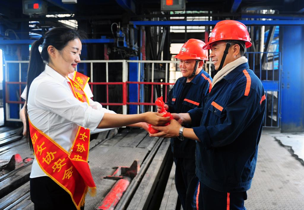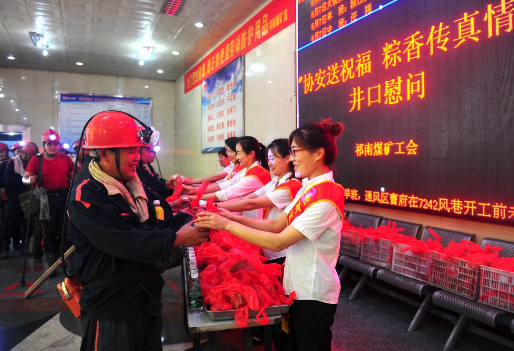 “吃個(gè)粽子,下井注意安全!”、“祝你端午節(jié)安康!”……6月7日,端午節(jié)中午,祁南礦在井口候罐大廳開展“協(xié)安送祝福 粽香傳親情”井口慰問活動(dòng)。協(xié)安員們?yōu)樯舷戮穆毠に蜕萧兆?、茶葉蛋、礦泉水等節(jié)日慰問品,并送上節(jié)日的祝福。
