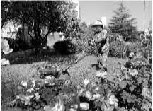 安徽淮北礦業(yè)集團(tuán)朱仙莊礦綠化班由10名職工組成,他們承擔(dān)著全礦花草樹木的種植、修剪等工作,他們被職工親切地稱為“綠色礦山守護(hù)者”。圖為綠化班職工在修剪草坪。王道玉 攝