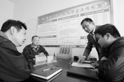 4月23日,淮北礦業(yè)孫疃煤礦職工向黨代表反映問題。為了拓寬黨代表聯(lián)系群眾的渠道,該礦設(shè)立了黨代表工作室,并實行回復責任制度,確保件件得到落實。 王亮 攝